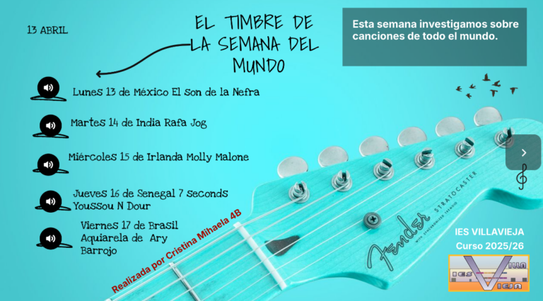 Esta semana escuchamos en el timbre música de diferentes partes del mundo seleccionadas por Cristina pudiendo ver las notables diferencias que hacen a cada cultura y cada rincón del mundo único.