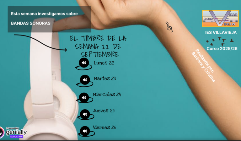 Comenzamos un nuevo curso y volvemos con el proyecto “Timbre Musical” que lleva a cabo el alumnado de 4º ESO. Este curso os proponemos semanas monotemáticas en las que añadimos información sobre las canciones elegidas.
